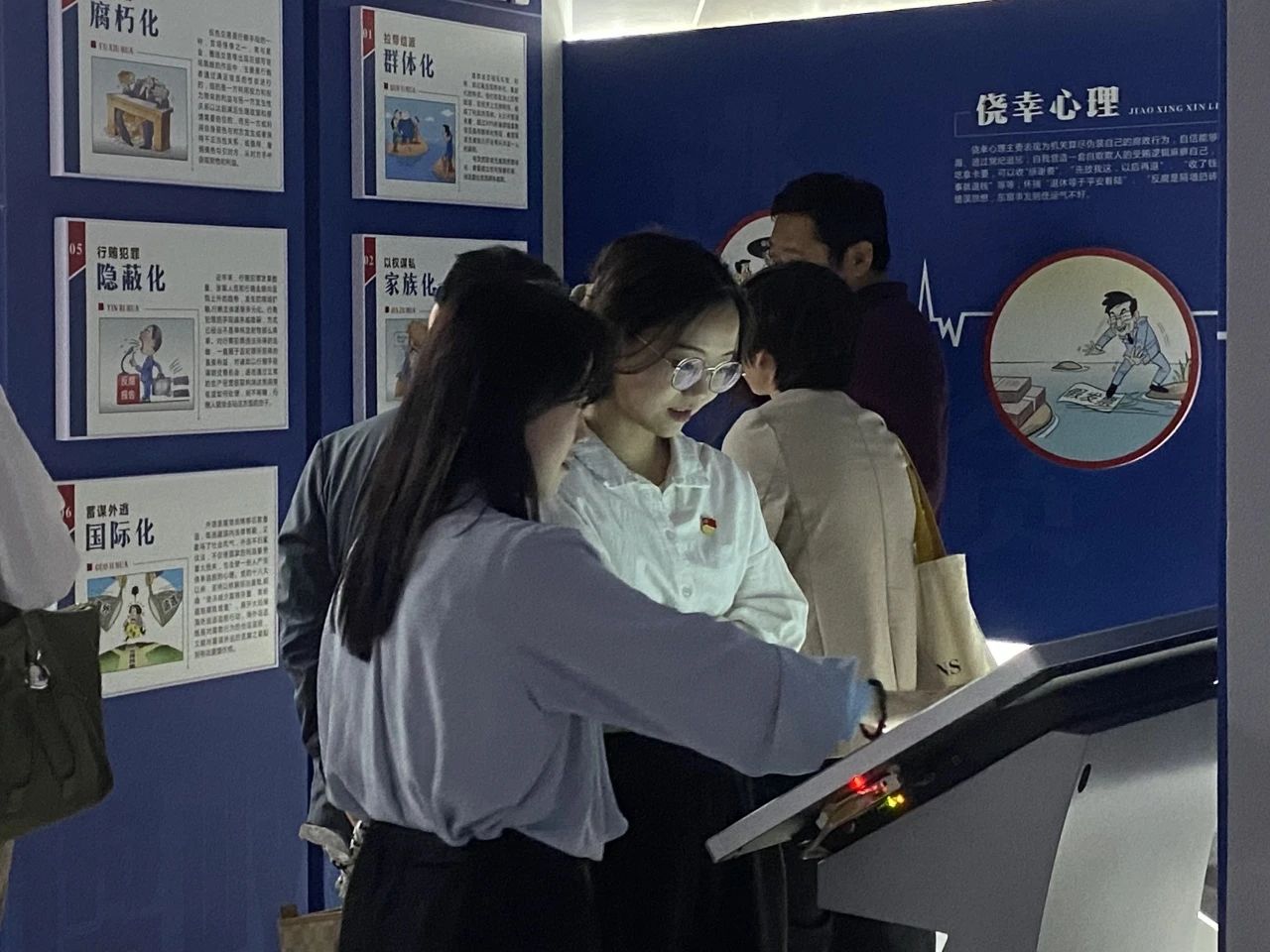 步入二楼“正盛年,奋发有为”展厅,党员们通过触摸石墨烯“魔法墙”,回望了党的百年光辉历程,在了解党在四个历史时期反腐工作的同时,体验360行多点互动和换装演示。