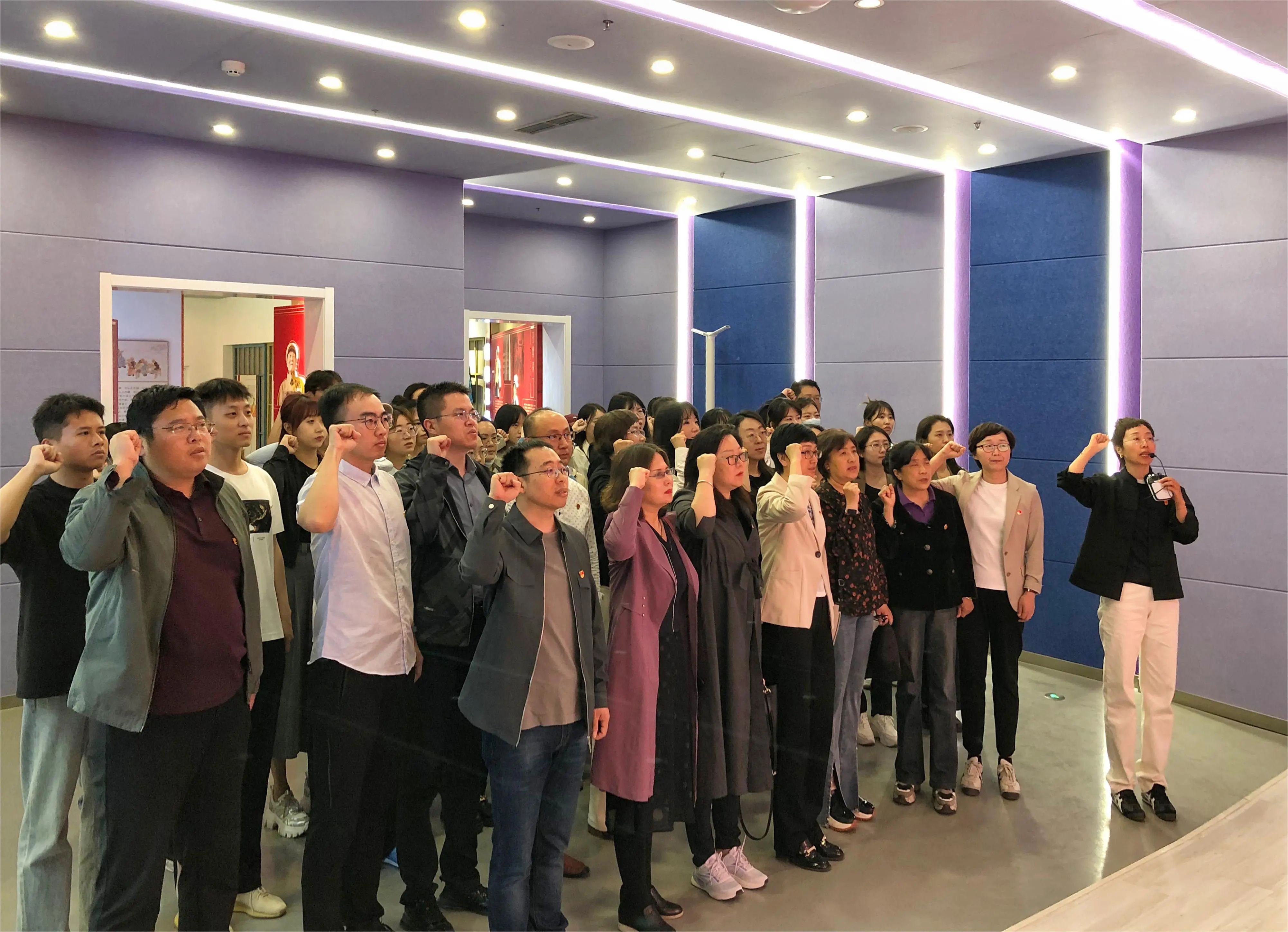 参观最后,师生们庄严肃立,在党总支书记于慧艳的带领下,面对鲜红党旗庄严宣誓,重温入党誓词。