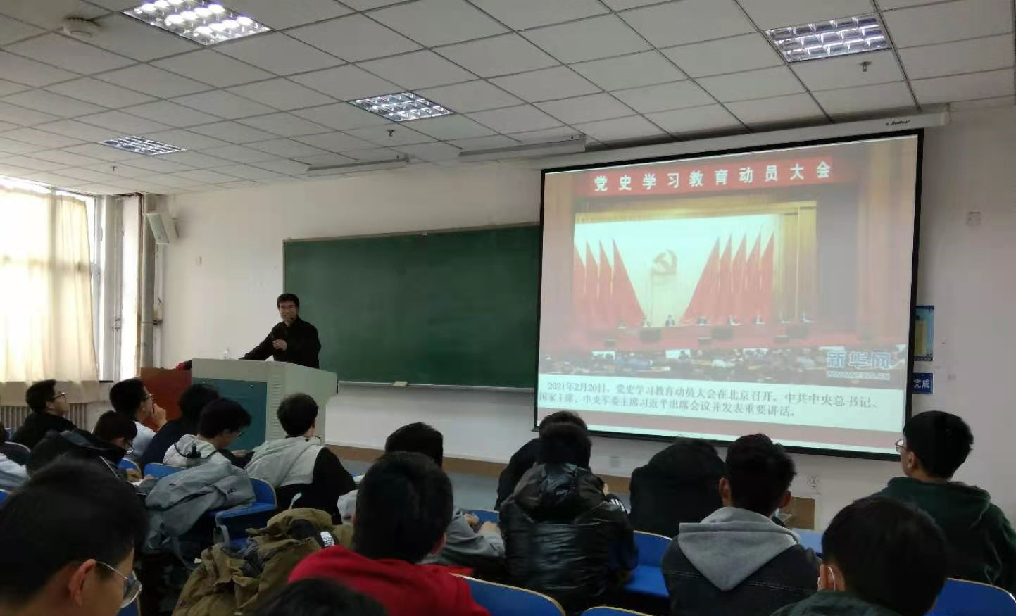 教师以“学党史,做时代新人”为主题,为本科生和研究生讲授2021年春季学期“开学第一课”。