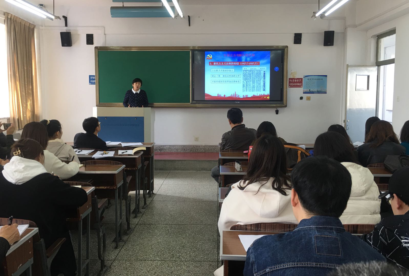 主办的“唱响新时代·马院理论学习讲堂”总第六讲2021年第二讲在2号楼513教室开讲。由关颖教授作《中国共产党与中国法治建设的历史进程》(1921年-2021年)专题党课,学院全体师生参加了本次学习。