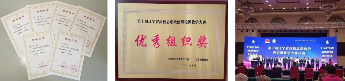 6名教师脱颖而出。其中,代冰、姜尧2位老师各以所在组别第一名的成绩荣获一等奖,并被教育厅授予“辽宁省高校思想政治理论课教学能手”称号,高婷婷、周伟、李先、于丽芬4位老师荣获二等奖。无论获奖名次还是获奖人数,均位居省内高校前茅。同时,我校连续三年被赛会授予“优秀组织奖”