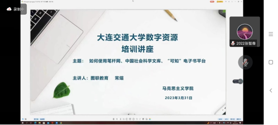 邀请图联教育就图书馆笔杆网、中国社会科学文库数据库、可知电子书平台等电子资源的使用方法开展培训讲座,学院全体研究生及部分教师参加学习,讲座由图联教育常煊老师主讲。